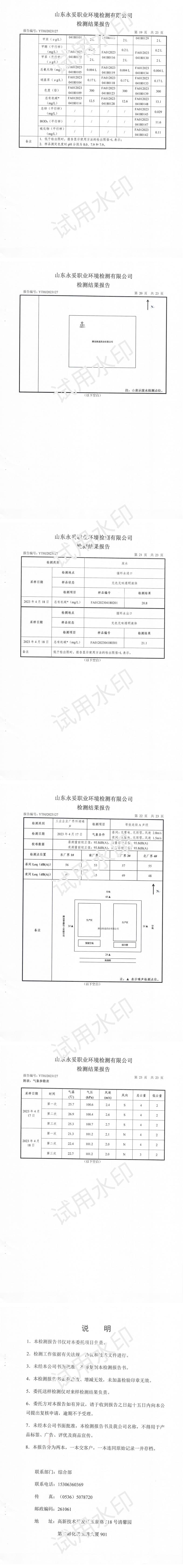 潍坊尊龙凯时人生就是赢药业有限公司四月环境检测报告